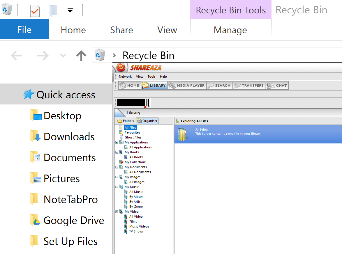 Screen Clip of Shareaza on a 4K UHD TV