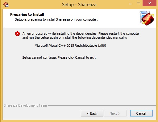 At first Setup the vcredist is downloaded again (and installed fine)